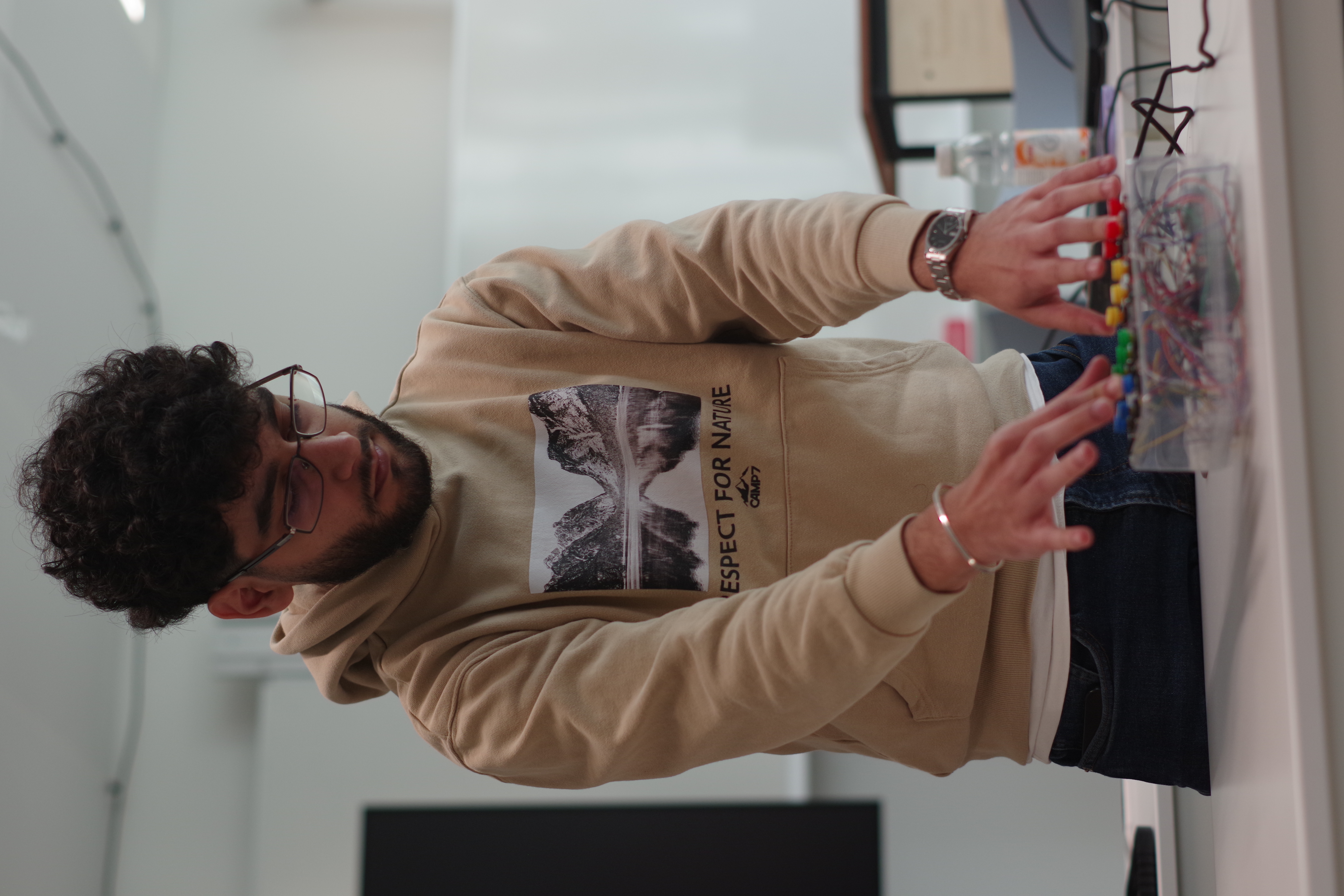 SONIC TWISTER IS A PSYCHEDELIC, SONIC REINTERPRETATION OF THE CLASSIC GAME TWISTER. THE CONCEPT BLENDS PHYSICAL INTERACTION WITH SOUND COMPOSITION, WHERE USERS MUST DISCOVER CORRECT MUSICAL COMBINATIONS BY PRESSING COLORED CIRCLES ARRANGED IN COLUMNS. UNLIKE THE TRADITIONAL GAME, EACH COLUMN CORRESPONDS TO A FIXED LIMB AND CONTAINS MULTIPLE BUTTONS REPRESENTING DIFFERENT SOUND ELEMENTS. THE AIM IS TO FIND THE CORRECT COMBINATION OF BUTTONS (ONE PER COLUMN) THAT FORM A COMPLETE, COHERENT MUSICAL PHRASE, BEFORE THE SOUND BECOMES FULLY CORRUPTED.